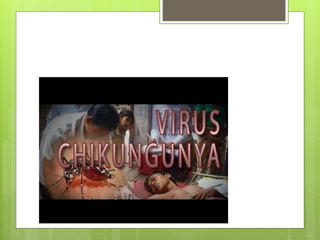 El documento describe el virus del chikungunya, una enfermedad transmitida por mosquitos que causa fiebre y dolor severo en las articulaciones. El virus se transmite a través de la picadura de los mosquitos Aedes aegypti y Aedes albopictus y provoca fiebre alta, dolor en las articulaciones y sarpullido. No existe una vacuna ni tratamiento específico, pero los síntomas se pueden aliviar con medicamentos. La mejor forma de prevención es evitar las picaduras de mosquitos.
