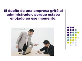 El documento describe cómo un círculo de odio se propagó entre varias personas que se gritaron y culparon mutuamente debido a la ira y frustración. Este círculo se interrumpió cuando la madre del joven médico lo trató con tolerancia, perdón y amor en lugar de gritarle, rompiendo así la cadena de odio. El mensaje final insta a las personas a romper los círculos de odio mediante la tolerancia, el perdón y el amor.
