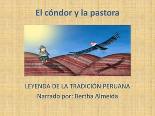 Un cóndor se enamora de una joven pastora y la lleva a vivir con él en su nido en lo alto de un barranco. Ella extraña a su padre y le pide al cóndor que la deje regresar, pero él se niega. Un picaflor se ofrece a ayudarla contándole a su padre dónde está; juntos logran rescatarla dejando sapos en el nido en su lugar. La joven regresa con su padre y viven felices, mientras el picaflor vuela entre las flores cerca de su