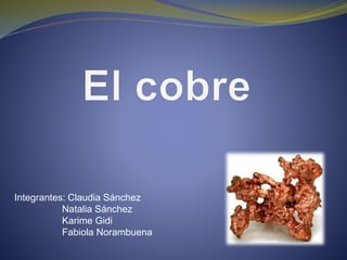El documento describe las propiedades del cobre, uno de los metales más antiguos y ampliamente utilizados. Se detalla que Chile es el mayor productor mundial de cobre, el cual se extrae principalmente a través de minas subterráneas y a rajo abierto, y se usa en aplicaciones como cables eléctricos, tuberías y monedas. También se explica que Codelco es la principal empresa estatal chilena productora de cobre.