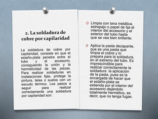 El cobre es un material dúctil y maleable utilizado en fontanería, por lo que al sujetarlo al tornillo de banco para trabajar con él se debe tener precaución para no deformarlo.