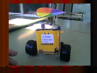 El documento habla sobre un cochecito eléctrico original de Aurora. Brevemente describe el montaje del cochecito y que la autora fue una alumna del curso 6o A.