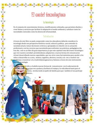 Este documento describe cómo la tecnología ha evolucionado rápidamente y ahora juega un papel importante en casi todos los aspectos de la vida diaria. Explica que la tecnología puede usarse para mejorar la educación facilitando nuevas formas de comunicación y permitiendo a los estudiantes experimentar cosas que de otro modo no podrían. Sin embargo, también advierte que la tecnología puede ser una "arma de doble filo" si no se usa correctamente y los niños no están protegidos de contenidos inapropiados. Concluye que la tecnología es