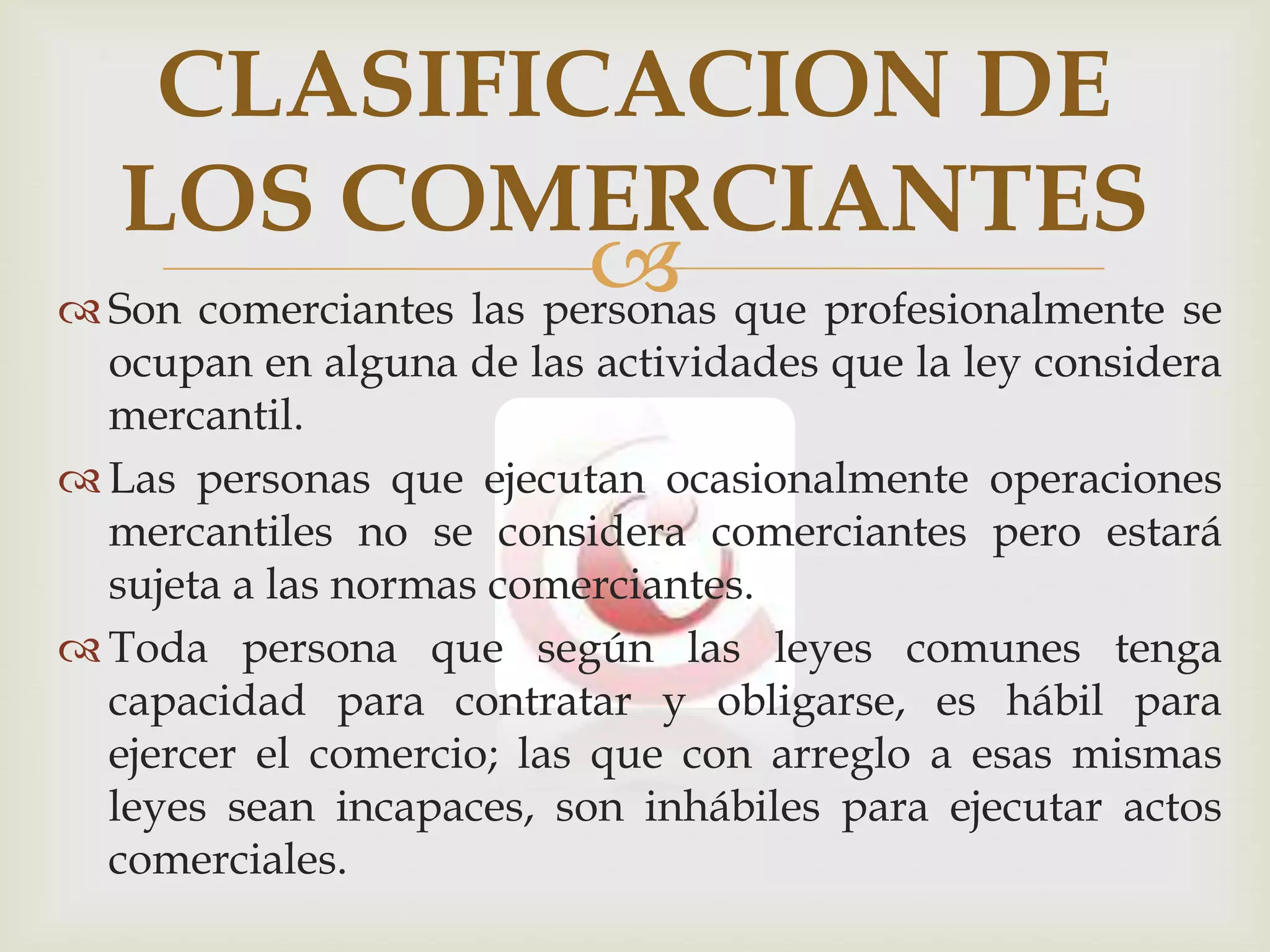 Las personas que se dedican profesionalmente a actividades mercantiles se consideran comerciantes. Toda persona con capacidad legal para contratar puede ejercer el comercio. Se presume que una persona es comerciante si está inscrita en el registro mercantil, tiene un establecimiento comercial abierto al público, o se anuncia públicamente como comerciante.