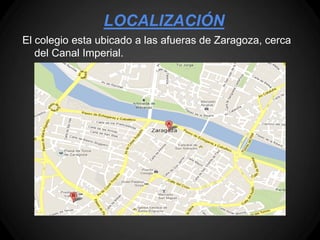 El Colegio Santa María del Pilar se ubica a las afueras de Zaragoza cerca del Canal Imperial. Originalmente estaba situado en la calle Miguel Servet pero se trasladó a su ubicación actual debido al aumento de estudiantes. El colegio consta de varios pabellones como el pabellón central que alberga el comedor, biblioteca y gimnasio, y pabellones dedicados a primaria, secundaria y bachillerato, así como recintos para recreo, campos de fútbol y piscinas.