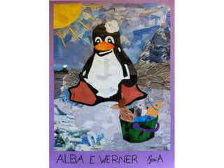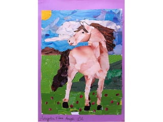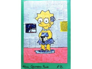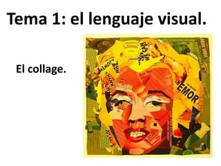 El documento presenta trabajos de collage realizados por estudiantes de primero y segundo de la ESO durante el curso 2011-2012. El collage es una técnica plástica que consiste en pegar diferentes elementos sobre una superficie para crear una imagen visual combinando formas, colores y texturas. El documento incluye los nombres de varios estudiantes y sus respectivos trabajos de collage.