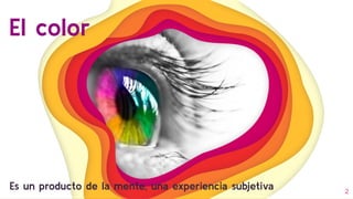 La percepción del color es una experiencia subjetiva producida por la interacción entre la luz, los ojos y el cerebro. Los receptores de la luz en los ojos transmiten mensajes al cerebro, que interpreta estas señales como las sensaciones de color que conocemos. El color es el resultado de la traducción de la luz en impulsos nerviosos a través de la retina y el nervio óptico hasta alcanzar la corteza visual del cerebro.