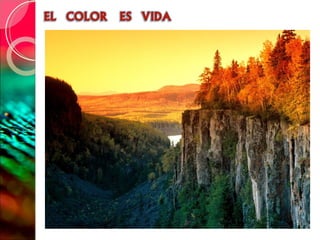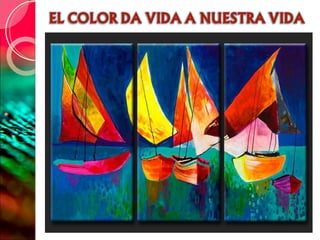 El documento resume la teoría del color, explicando que el color se produce por la longitud de onda de la luz reflejada por los objetos. Describe los modelos del círculo cromático y los colores primarios, secundarios y terciarios. Explica diferentes combinaciones de colores como la monocromática, de complementarios y por analogía. Señala que la armonía se produce por una integración grata de colores, mientras que el contraste crea dinamismo. Finalmente, analiza la importancia del color en la decoración y su influencia psicoló