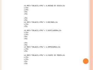 El documento habla sobre la creación de una página web en HTML y las partes que la componen. Se explica cómo crear la página principal y luego cada una de las páginas individuales, finalizando con un agradecimiento.