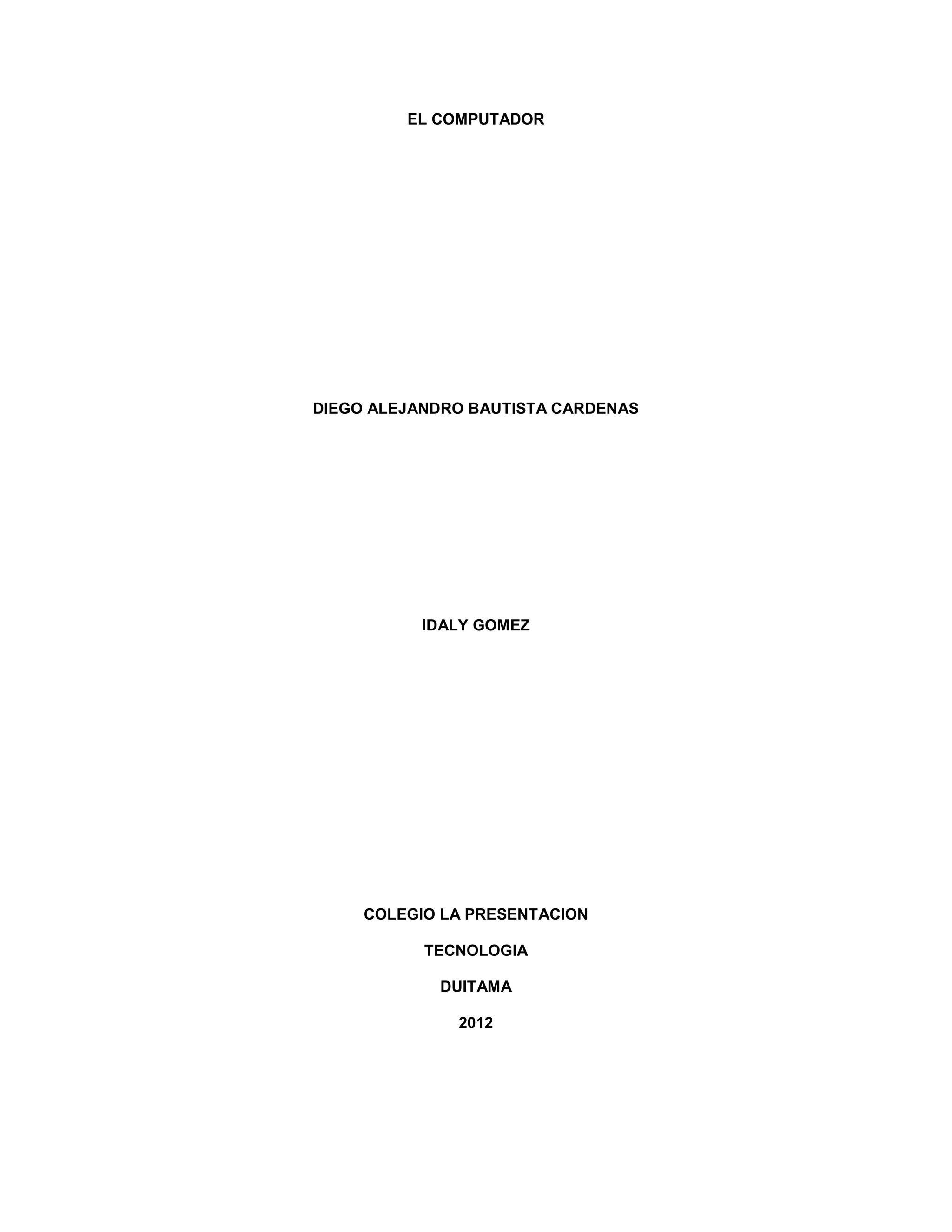 El documento describe los componentes básicos de una computadora, incluyendo el hardware y el software. El hardware incluye la unidad central de procesamiento, la memoria, el disco duro, la tarjeta madre y periféricos como el teclado, ratón, monitor e impresora. El software incluye el sistema operativo, que controla los componentes hardware y permite ejecutar aplicaciones, y programas de aplicación como procesadores de texto. También describe cómo Internet conecta redes de computadoras a nivel mundial para compartir información.