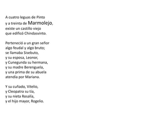 El documento narra la historia de Lisardo y Pepa, hija del Conde Sisebuto. Los jóvenes se enamoran pero son descubiertos por Sisebuto durante una noche de tormenta en el castillo. El Conde mata a Lisardo de un puñal y enloquece a Pepa y a él mismo de la impresión. Desde entonces, nada más se supo de la familia que habitaba el castillo.
