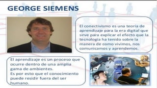 El conectivismo es una teoría del aprendizaje creada por Stephen Downes y George Siemens para explicar el aprendizaje complejo en un mundo digital en rápida evolución. Según esta teoría, el aprendizaje se produce a través de las conexiones dentro de las redes, utilizando el concepto de una red con nodos y conexiones. El modelo del conectivismo define el aprendizaje como el que se produce a través de las conexiones dentro de las redes.