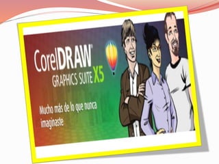 Este documento presenta una introducción a Corel Draw x5, un software de diseño gráfico que incluye ilustración vectorial, diseño de páginas, edición de fotos y otras herramientas. Corel Draw x5 ofrece un flujo de trabajo rápido e intuitivo y es compatible con los principales formatos de archivo. Esta versión incluye mejoras como un organizador de contenido, herramientas para crear gráficos y animaciones web, y técnicas de diseñadores expertos.