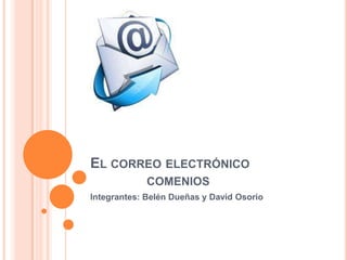El correo electrónico permite enviar mensajes de forma rápida y económica entre usuarios con cuentas de correo. Los mensajes electrónicos pasan de servidor en servidor hasta llegar a su destino en cuestión de minutos sin importar la ubicación. Existen diferentes tipos de correo electrónico como el correo web y POP3, y proveedores de servicios de correo gratuitos y pagados con diferentes características y almacenamiento.