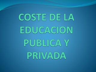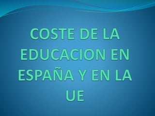 Este documento analiza los costos de la educación pública y privada en España y cómo se comparan con otros países de la UE y la OCDE. Explica que el gasto anual por alumno es mayor en la educación pública española que en la mayoría de escuelas privadas, aunque solo 9 escuelas privadas tienen costos más altos. También describe las diferencias en los sistemas de becas entre España y otros países y concluye que España gasta más por alumno universitario que el promedio de la OCDE pero ofrece menos becas.