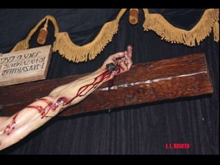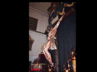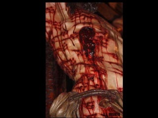 Este Cristo es el único en el mundo que refleja los detalles de las heridas y el cuerpo tal como aparece en la Sábana Santa de Turín. Ha sido realizado por un escultor y un grupo de científicos para reproducir con exactitud los politraumatismos observados en la Síndone. Muestra las heridas producidas por latigazos, la corona de espinas, las manos y pies en posiciones propias de un crucificado, así como detalles de la piel y sangre coherentes con un hombre muerto hace una hora