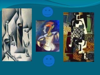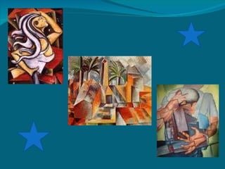 El documento describe el movimiento artístico del cubismo. Se inició con la obra "Las señoritas de Avignon" de Pablo Picasso. El cubismo se caracteriza por la fragmentación y descomposición de las formas en planos bidimensionales, la eliminación de la perspectiva tradicional y el uso de colores neutros. El cubismo pasó por tres etapas: cezaniano, analítico y sintético. Picasso, Braque y Gris fueron los principales artistas cubistas.