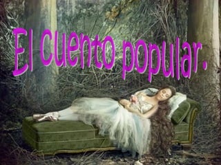 Este documento describe la naturaleza de los cuentos populares y su transmisión oral de generación en generación, lo que dio lugar a diferentes versiones de las mismas historias. Explica que los cuentos populares tienen características como una serie de acciones ficticias que terminan felizmente, falta de detalles descriptivos y tiempos y lugares indeterminados.