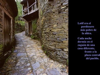 Latif era el pordiosero más pobre de la aldea. Fue nombrado asesor del rey después de responder sabiamente a sus preguntas. Los celosos cortesanos intentaron convencer al rey de que Latif estaba conspirando, aunque en realidad Latif solo visitaba secretamente su antigua habitación para no olvidar sus humildes orígenes.