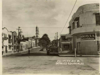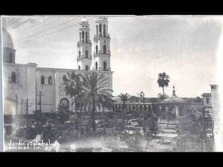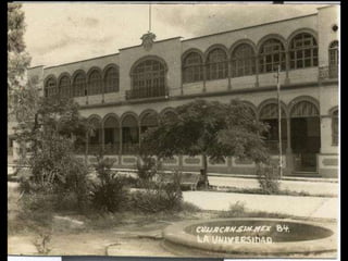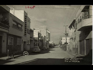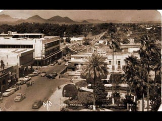 El documento presenta fotografías históricas de Culiacán, específicamente de la catedral y del teatro Apolo, tomadas por Marco Antonio Hernández Gil en 1969 y 1971. Se menciona también la conexión personal del autor con estas imágenes a través de relatos de su padre. Estas fotos reflejan la evolución de la ciudad y su patrimonio cultural.