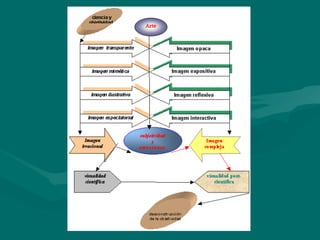 El documento analiza el cambio en el concepto de arte y conocimiento en la era contemporánea. Se discute el paso del arte moderno como objeto autónomo al arte contemporáneo como proceso relacional e interactivo. También se examina el cambio del sujeto de conocimiento cerrado a uno abierto e integrado en una inteligencia colectiva. Finalmente, se describe el papel cada vez más complejo de la imagen en la representación del conocimiento.