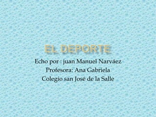 El deporte se define como una actividad física que involucra reglas y competición, generalmente a través de clubes o federaciones. Aunque el deporte y la actividad física son similares, el deporte se enfoca más en la competición. Popularmente, se recomienda practicar deportes u otras actividades físicas para beneficios de salud. El fútbol es uno de los deportes más populares, jugado entre dos equipos de 11 jugadores cada uno, con el objetivo de introducir una pelota en la portería contraria.