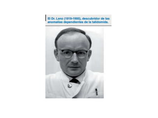 La Talidomida fue un sedante y calmante de náuseas durante el embarazo comercializado entre 1958 y 1963 que provocó graves malformaciones en los brazos y piernas de bebés expuestos durante el primer trimestre, cuando se forman esas extremidades. Investigaciones posteriores revelaron que las pruebas preclínicas en animales se hicieron de forma incorrecta y los resultados se falsearon, lo que llevó a la aprobación y comercialización mundial del fármaco y causó miles de afectados.