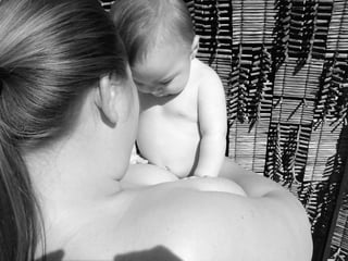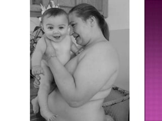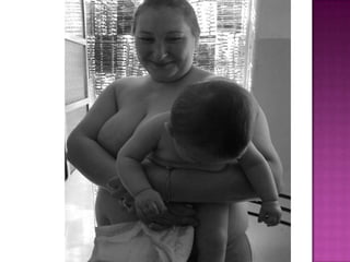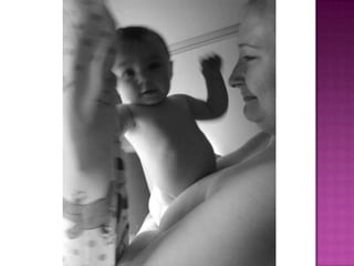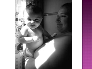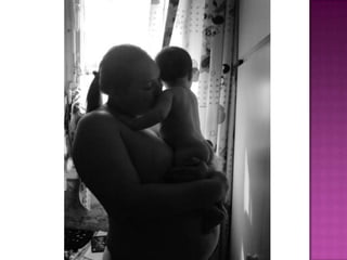 Este documento describe un proyecto fotográfico que busca capturar la conexión entre una madre y su hija a través de varias imágenes que expresan amor, calidez y protección. Las fotos muestran a una madre amamantando y abrazando a su bebé usando luz natural y encuadres verticales y diagonales. El documento también explica que las imágenes se exhibirían en un patio cubierto de un centro cultural colgadas de árboles, con música suave para complementar el concepto de naturalidad, amor y pureza