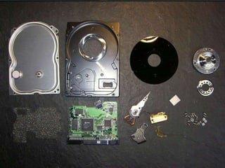 El documento describe qué es un disco duro, cómo funciona almacenando y leyendo datos, los diferentes tipos según su ubicación, tamaño y fabricante. Explica la evolución histórica de los discos duros y las empresas líderes en su fabricación como Western Digital y Seagate.