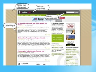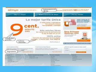 Este documento describe la evolución de la web desde su creación en 1991 hasta la actualidad. Explica cómo la Web 2.0 introdujo nuevas características como contenido generado por los usuarios y aplicaciones más interactivas. También analiza los cambios en el diseño web, incluyendo elementos comunes como colores vibrantes, bordes redondeados y degradados. Además, discute el desarrollo de tecnologías como AJAX, Flash y los navegadores web, así como cómo los usuarios se han vuelto más exigentes con el tiempo.