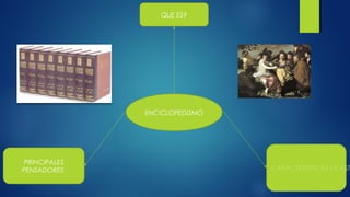 El enciclopedismo fue un movimiento filosófico y pedagógico del siglo XVIII expresado a través de la Enciclopedia publicada por Diderot y D'Alembert, que buscó resumir todo el saber de la época en 28 volúmenes. Sus características incluyeron divulgar el conocimiento con fines de desarrollo social mediante el uso de la razón, promover ideas republicanas y democráticas, y luchar contra el feudalismo y el absolutismo. La meta del enciclopedismo siempre fue la divulgación del conocimiento y la dem