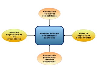 Este documento describe los diferentes factores que componen el entorno empresarial, incluyendo el análisis PESTEL, el análisis competitivo de Porter, y cómo estos afectan a la rentabilidad y estrategia de las empresas. Se analizan aspectos como las amenazas, oportunidades, cultura, competidores, proveedores, clientes y sustitutos para diferentes sectores.