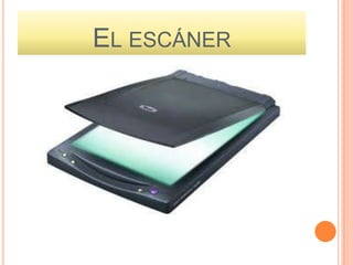 El documento describe los escáneres, incluyendo su definición como dispositivos que convierten imágenes impresas a formato digital usando luz. Explica que tienen varios tipos como manuales, de página completa o para hojas sueltas, y se conectan a través de puertos como USB, Firewire o paralelo. Además, menciona algunas características como la resolución y ejemplos de modelos y precios de escáneres.