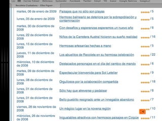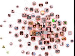 El documento analiza el impacto del usuario en diferentes plataformas digitales y redes sociales, destacando su papel en la selección de noticias, transacciones y el periodismo ciudadano. Incluye referencias a la teoría de los seis grados de separación y ejemplos de movimientos sociales organizados, así como la noción de adhocracia en organizaciones. Además, presenta estadísticas sobre el uso de Twitter y una lista de redes sociales en español.