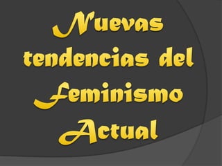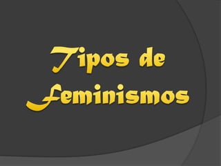 El documento presenta una introducción al feminismo como ideología y movimiento que busca la igualdad de derechos entre mujeres y hombres. Explica que surgió en la Revolución Francesa cuando los "Derechos del Hombre y del Ciudadano" no incluían a las mujeres, dando origen al movimiento sufragista. A lo largo de la historia han surgido diferentes corrientes feministas como el feminismo radical, socialista, liberal, entre otros, que buscan la liberación y emancipación de las mujeres desde distintas perspectivas.