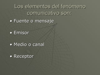 Este documento describe los elementos clave del proceso de comunicación: el emisor, el mensaje, el canal y el receptor. Explica que el emisor inicia el proceso al codificar y enviar un mensaje a través de un canal como una conversación o correo electrónico. El receptor recibe e interpreta el mensaje, concluyendo el proceso de comunicación. Se provee un ejemplo de correo electrónico para ilustrar estos elementos.