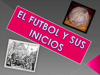 El documento resume la historia del fútbol desde sus orígenes en civilizaciones antiguas hasta su consolidación como deporte moderno en el siglo XIX. Se mencionan juegos de pelota practicados en China, Japón, el Imperio Romano y Grecia, así como en culturas prehispánicas. Posteriormente, en la Edad Media en Inglaterra surgieron diversos códigos de fútbol que con el tiempo fueron unificándose, dando origen al deporte conocido hoy mundialmente.