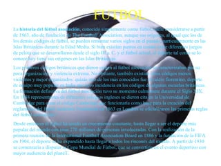 El fútbol asociación, fundado en 1863 en Inglaterra, se ha convertido en el deporte más popular del mundo, con las primeras reglas oficiales establecidas en Londres. La Copa Mundial de la FIFA, iniciada en 1930, es el torneo más importante de selecciones nacionales, mientras que la Champions League se reconoce como la competencia de clubes más prestigiosa de Europa. Jugadores como Maradona, Messi, Pelé y Kaká han dejado una huella indeleble en la historia del fútbol con sus logros y reconocimientos.