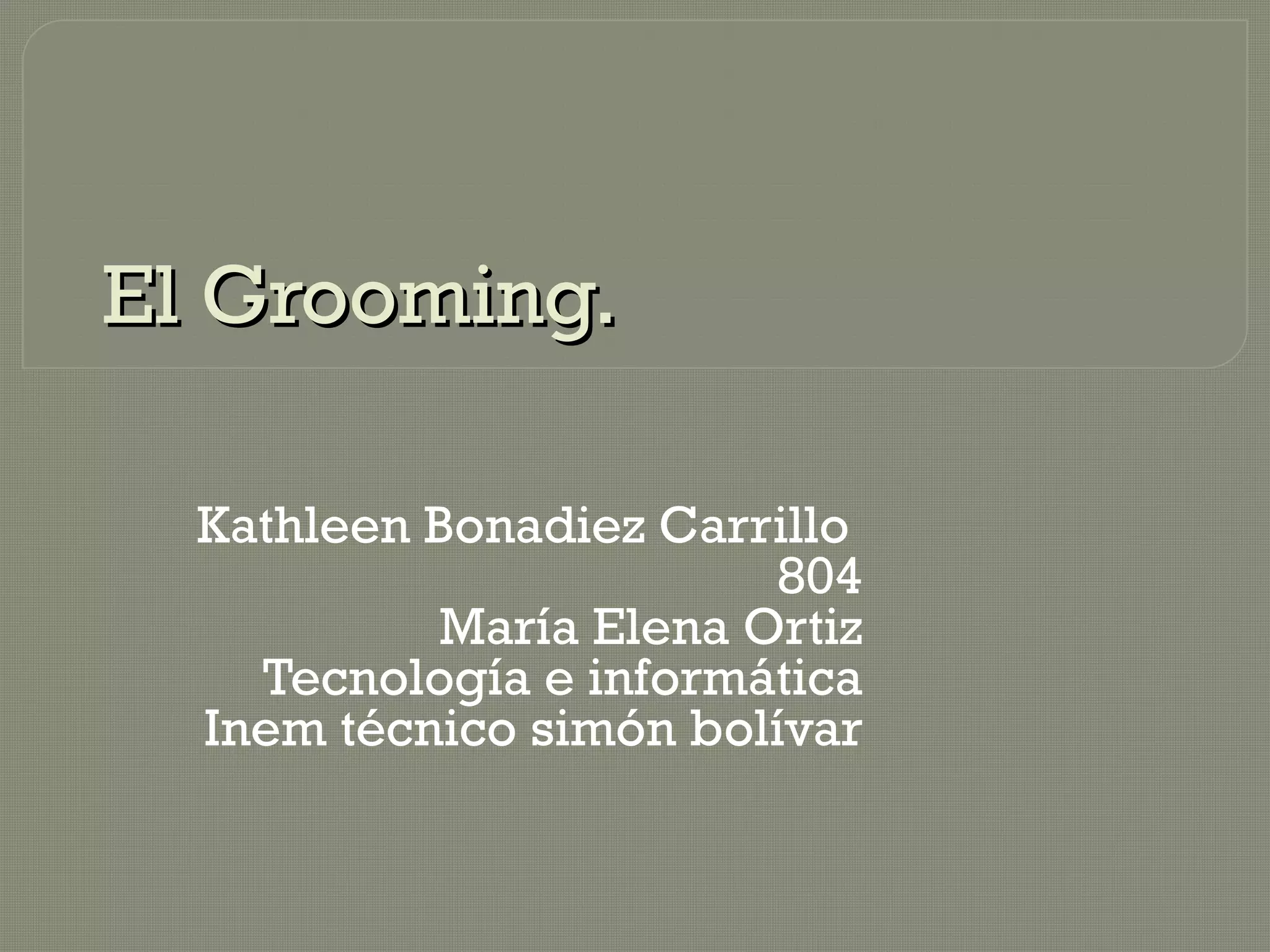 El documento define el grooming como una forma de abuso en la que un adulto acosa a un niño en línea con contenido sexual explícito o implícito con el objetivo de preparar el terreno para abusar del menor físicamente. El grooming aparece junto al ciberacoso pero involucra el acoso de un adulto en lugar de un par. El documento proporciona una definición breve de esta práctica dañina.