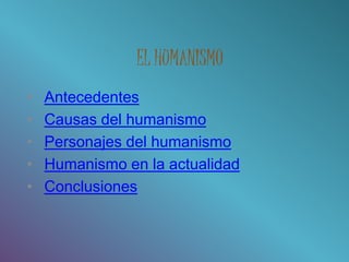 El humanismo, surgido en el siglo XV en Italia, fue una respuesta a las crisis sociales y culturales, centrando al ser humano como eje del pensamiento y promoviendo el valor individual. Personajes como Dante Alighieri, Francesco Petrarca y Giovanni Boccaccio fueron fundamentales en su desarrollo, abogando por el estudio de las artes y las letras clásicas, y cuestionando la autoridad de la iglesia. Actualmente, el humanismo sigue influyendo en la educación y en las relaciones sociales, proponiendo un cambio hacia una sociedad más justa e igualitaria.
