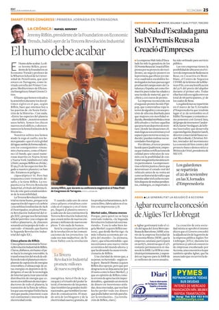 Jeremy Rifkin habló en el Primer Congreso Mediterráneo de Eficiencia Energética y Smart Green Cities sobre los peligros del cambio climático y la necesidad de pasar a una Tercera Revolución Industrial sin combustibles fósiles. Rifkin propuso cinco pilares para esta revolución: energías renovables, edificios como plantas de energía, almacenamiento de hidrógeno, una red inteligente de distribución energética, y vehículos eléctricos. Argumentó que esta transición crearía numerosos empleos y que lí