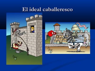 El ideal caballeresco surgió durante el feudalismo como una ideología que legitimaba la posición social de la nobleza guerrera. Montar a caballo en la batalla permitió el ascenso social de los guerreros y su concesión de tierras. Más tarde, cuando declinó su eficacia militar, los caballeros reforzaron su legitimidad a través de un mito que enfatizaba valores como la lealtad, el heroísmo y el honor.