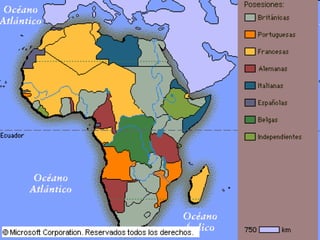 El documento describe la época del imperialismo europeo a finales del siglo XIX y principios del XX. Explica las causas económicas, demográficas y geopolíticas del colonialismo europeo en Asia y África, así como la conquista y organización de las colonias. Además, detalla el reparto del mundo entre las potencias europeas y el surgimiento de los imperios británico, francés y otros. Por último, resume las consecuencias de la colonización en términos de infraestructuras, cambios económicos, sociales y culturales
