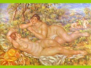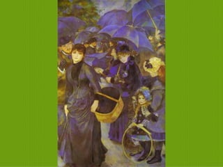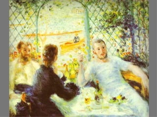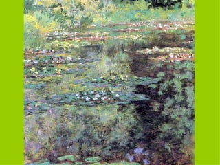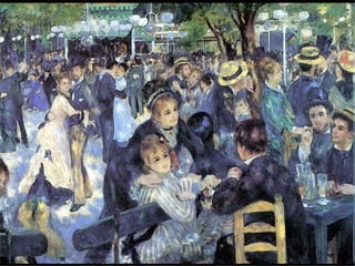 El documento presenta un resumen sobre el Impresionismo. Explica que los impresionistas se interesaron por reflejar la luz en los objetos usando pinceladas sueltas y aplicando la teoría de los colores. Pintaban al aire libre y representaban un mismo espacio en sucesivas obras, eliminando sombras y claroscuros. Artistas como Manet, Monet, Renoir y Degas fueron pioneros de este movimiento que surgió en Francia en la década de 1870.