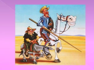 Don Quijote, un hidalgo de 50 años, decide hacerse caballero andante y comienza sus aventuras junto a su escudero Sancho Panza. En sus andanzas, Don Quijote demuestra su locura al atacar molinos de viento pensando que son gigantes y frailes creyendo que secuestran una dama. Más adelante, es engañado por amigos que lo encierran en una jaula y llevan de vuelta a su casa, donde fallece reconociendo que estuvo loco al hacerse caballero andante.