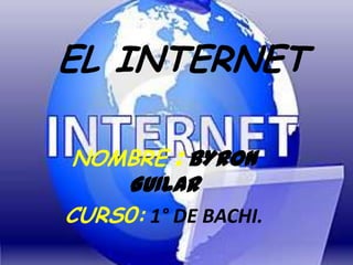 Internet comenzó como una red militar estadounidense llamada ARPANET para conectar computadoras de forma redundante. Eventualmente evolucionó a una enorme red global que conecta computadoras y redes de todo el mundo, permitiendo compartir y transferir información. La World Wide Web ha impulsado su popularidad al permitir navegar e interactuar con sitios web de forma gráfica. Aunque el uso de Internet en Ecuador es bajo debido a factores como costos y falta de infraestructura, también existe el riesgo de adicción a su uso.