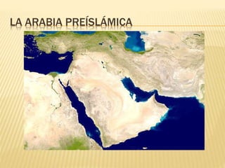 La Arabia preislámica practicaba el politeísmo animista y daba gran importancia al Santuario de la Kaaba en La Meca. Los cinco pilares del Islam son la profesión de fe, la oración, el ayuno en Ramadán, la limosna y la peregrinación a La Meca. El islam evolucionó históricamente a través del Califato Ortodoxo, el Califato Omeya y el Califato Abasí. Los suníes y chiíes son las dos ramas principales del Islam.