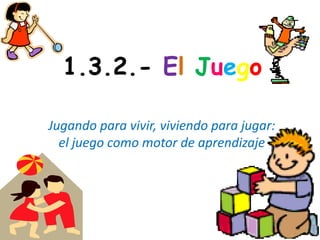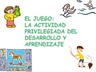 El documento describe el juego como una actividad fundamental para el aprendizaje y desarrollo de los niños. Explica que a través del juego motor, exploratorio, simbólico y cooperativo, los niños desarrollan habilidades cognitivas, motrices, sociales y emocionales. También destaca el papel de la persona adulta en facilitar y observar el juego de los niños.