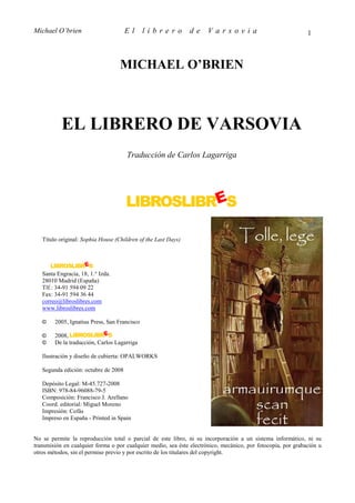 Este documento presenta un prólogo de una novela que cuenta el encuentro entre un político israelí y una mujer mayor polaca en Nueva York en 1963. La mujer afirma que un ángel la guió hasta él y le entrega una carta y un regalo de alguien que le quería. Revela que conoce el verdadero nombre del político, David Schäfer, lo que le sorprende. El prólogo plantea el misterio sobre la identidad del político y su pasado en Varsovia durante la guerra.