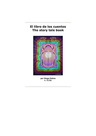Este documento presenta varios cuentos cortos y fábulas en español e inglés. El índice muestra los títulos de más de 50 historias. Algunas de las historias incluyen "¿A quién escogerías?", que trata sobre invitar al amor, la riqueza o el éxito a la casa; "Abandona toda esperanza de resultados", sobre dejar ir los resultados al meditar; y "Autobiografía en cinco capítulos", acerca de caer en un hoyo en la acera repetidamente hasta aprender. El